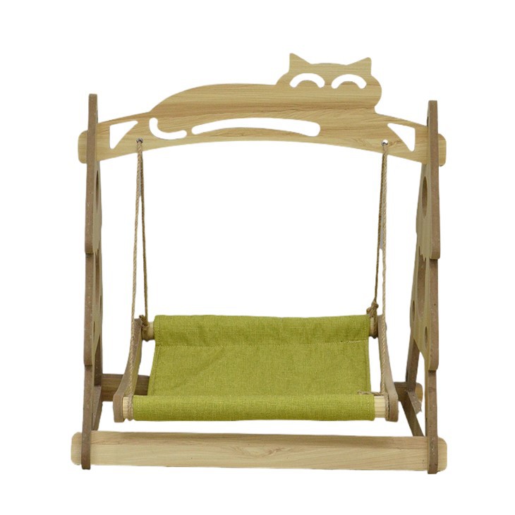 Drewniany hamak dla kota o solidnej trójkątnej konstrukcji, stabilny w użytkowaniu, nie trzęsie się, jest bezpieczny w użyciu.